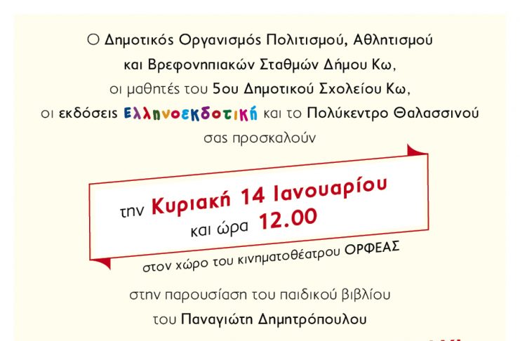 Στο πλαίσιο των θερινών πολιτιστικών εκδηλώσεων «Ιπποκράτεια 2025» το Τμήμα Πολιτισμού Δήμου Κω σας ενημερώνει για τις προσεχείς εκδηλώσεις: