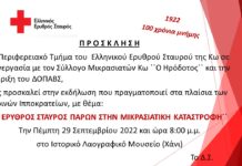 Εκδήλωση: «Ο Ελληνικός Ερυθρός Σταυρός παρών στην Μικρασιατική Καταστροφή» Πέμπτη στις 20:00 στο Χάνι