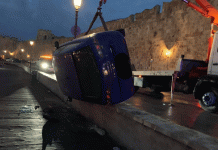 Ένα αυτοκίνητο στο οποίο επέβαιναν τέσσερα άτομα, κάτω από άγνωστες συνθήκες, έπεσε στη θάλασσα, έξω από την Παλιά Πόλη στην Ρόδο.