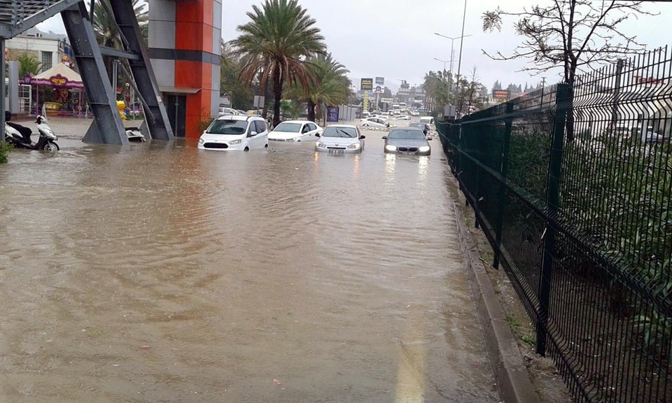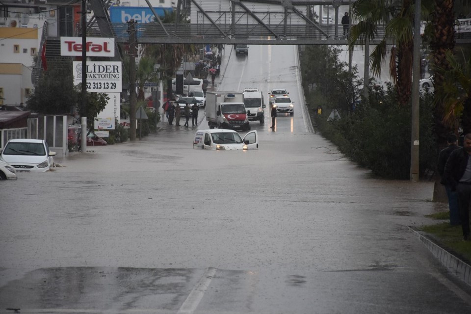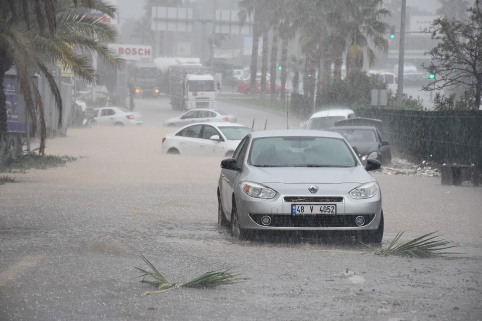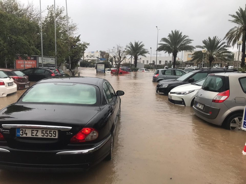 Kıbrıs Şehitleri Caddesi’nden Gümbet Kavşağı istikametindeki çok sayıda araç su altında kaldı. Bazı araçların kullanılamaz hale geldiği görüldü.