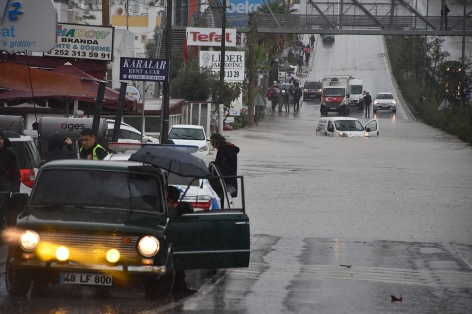Bodrum merkezindeki bazı cadde ve sokaklar da sel suları nedeniyle kapandı. Polis ekipleri, araçların geçişine izin vermedi.
