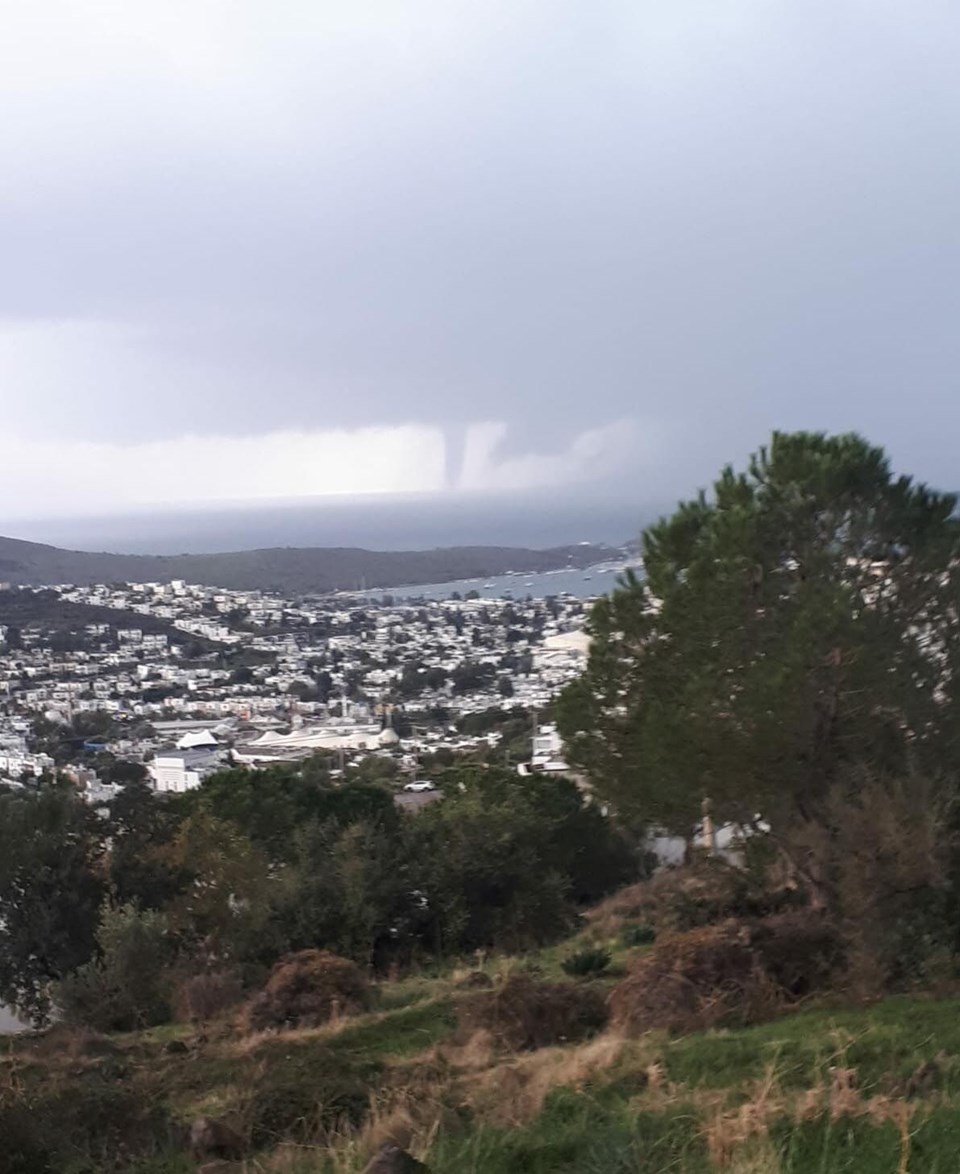 Bodrum’a doğru ilerleyen hortum, yaklaşık 15 dakika sürdü. Ardından gök gürültülü yağmur başladı. -