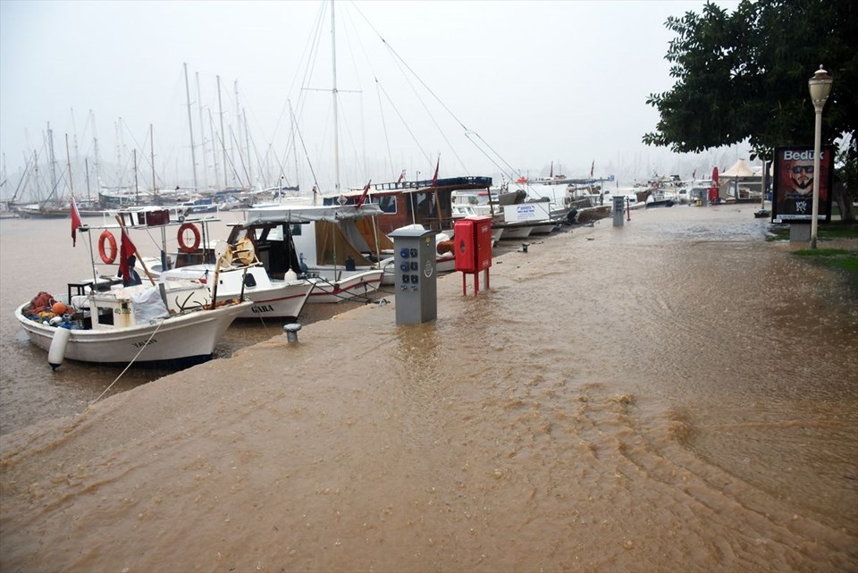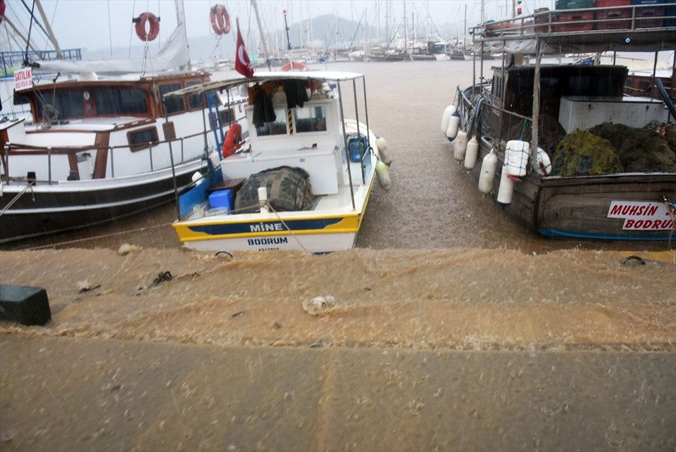 Η έντονη βροχή που ξεκίνησε μετά το σχηματισμό της μάνικας στη θάλασσα στην Αλικαρνασσό, παραλύσει τη ζωή. Λόγω των βροχοπτώσεων, οι δρόμοι και οι δρόμοι επέστρεψαν στη λίμνη και οι πλημμύρες συνέβησαν σε σπίτια και επιχειρήσεις. Την ακτή Kumbahçe, όπου το λασπώδες νερό χύθηκε στη θάλασσα ως αποτέλεσμα καταιγίδας, και το νερό γύρισε στο καφέ στο λιμάνι.)