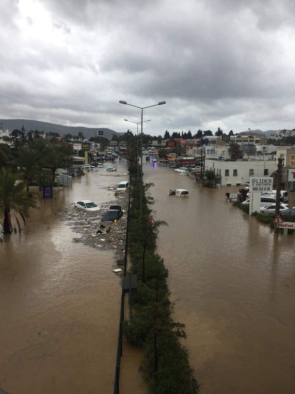 Σφοδρή θεομηνία στο Bodrum από τις 2το μεσημέρι και μετά «άνοιξαν» οι ουρανοί και πλημμύρισαν δρόμοι και τα σπίτια…