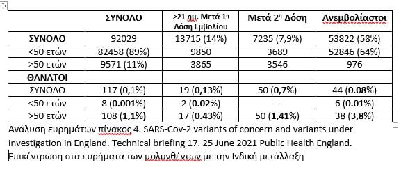 Το συγκεκριμένο έγγραφο είναι αναρτημένο στη σελίδα του αντίστοιχου ΕΟΔΥ της M. Βρετανίας. Δεν είναι από κάποιον ιδιωτικό φορέα. Αυτά που γράφεις είναι σωστά αλλά προφανώς δεν αναφέρονται για τη μετάλλαξη Δέλτα. Το «άσχημο» είναι ότι για τη συγκεκριμένη μετάλλαξη, τα εμβόλια είναι πολύ λιγότερα αποτελεσματικά. Όμως το «καλό» είναι πως ενώ μεταδίδεται ευκολότερα, προκαλεί πολύ μικρή νοσηρότητα και πολύ μικρή θνητότητα. Δηλαδή προσομοιάζει σχεδόν με τον ιό της γρίπης. Τα στατιστικά στοιχεία που επικαλείται ο καρδιοχειρουργός Γάκης βρίσκονται στη σελίδα 13 του PDF στο Table 4.
