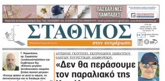 Το πρωτοσέλιδο της εφημερίδας ΣΤΑΘΜΟΣ