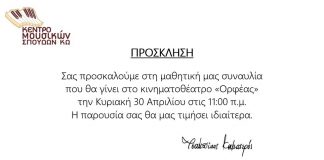 Κέντρο Μουσικών Σπουδών Κω: Πρόσκληση σε μαθητική συναυλία – Κυριακή 11πμ...