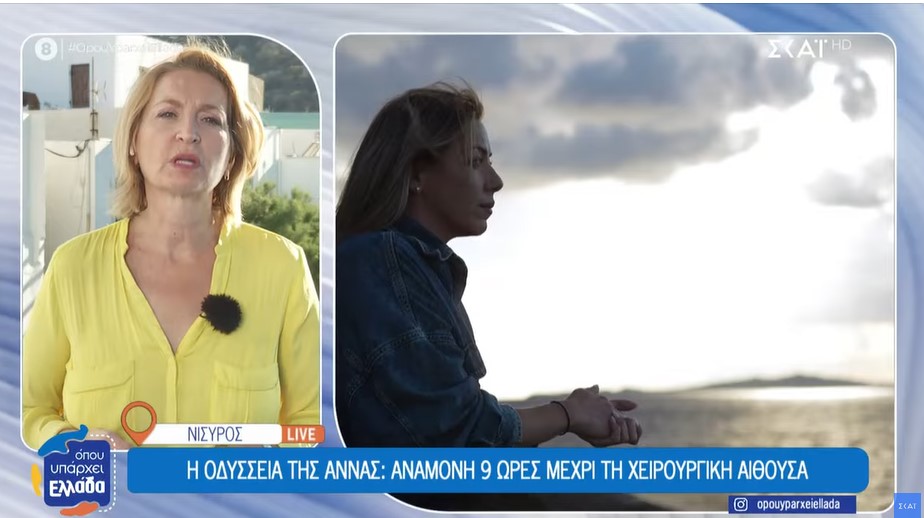 Μια απλή αδιαθεσία παραλίγο να κοστίσει τη ζωή στην Άννα από τη Νίσυρο, που βρέθηκε αντιμέτωπη με τον χρόνο, αλλά και τις ελλείψεις του συστήματος υγείας των νησιών. Χρειάστηκαν εννέα ολόκληρες ώρες για να μεταφερθεί από το ιατρείο της Νισύρου στο νοσοκομείο της Κω, προκειμένου να χειρουργηθεί. Η διακομιδή έγινε στις 5 το πρωί από το καραβάκι που μεταφέρει τους εργαζόμενους στο Γυαλί και όταν έφτασε στην Κω την περίμενε άλλη μια δυσάρεστη έκπληξη, καθώς το ασθενοφόρο που την παρέλαβε ήταν «σαράβαλο» και έκανε ενδιάμεσες στάσεις, επιμηκύνοντας την αγωνία και τον πόνο της. Όπως λέει, χρωστάει τη ζωή της στη νεαρή αγροτική ιατρό του νησιού και εξακολουθεί να αντιμετωπίζει με δυσπιστία το σύστημα υγείας στα μικρά νησιά.