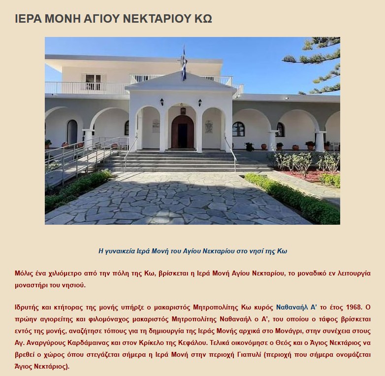 Με τη δέουσα λαμπρότητα και μεγαλοπρέπεια πραγματοποιήθηκε ο εορτασμός του Αγίου Νεκταρίου στην πανηγυρίζουσα φερώνυμη Ιερά Μονή της Κω.