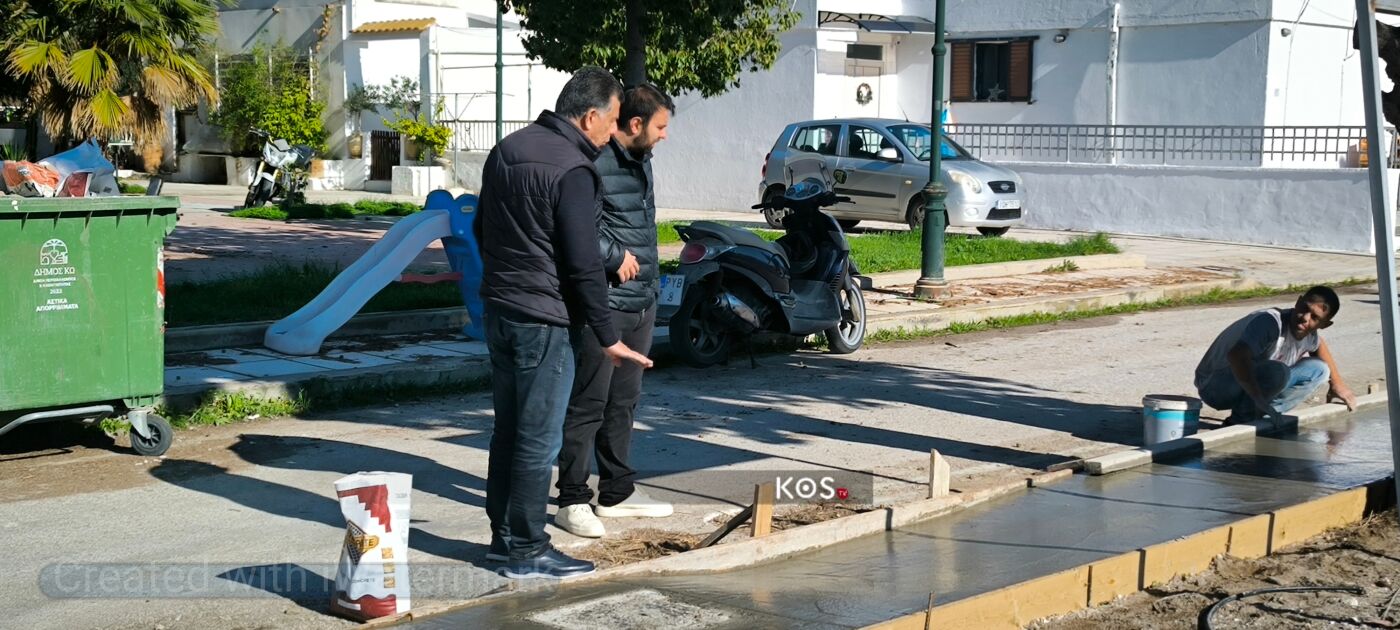 Σε εξέλιξη έργα καθημερινότητας στην Κω, με νέα πεζοδρόμια στην περιοχή Λαϊκά και σε άλλες γειτονιές