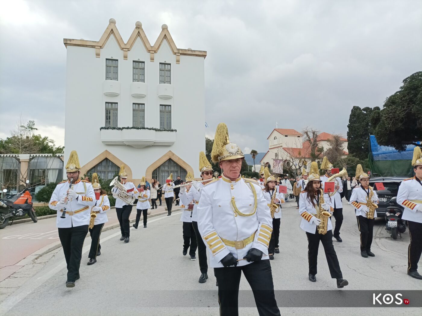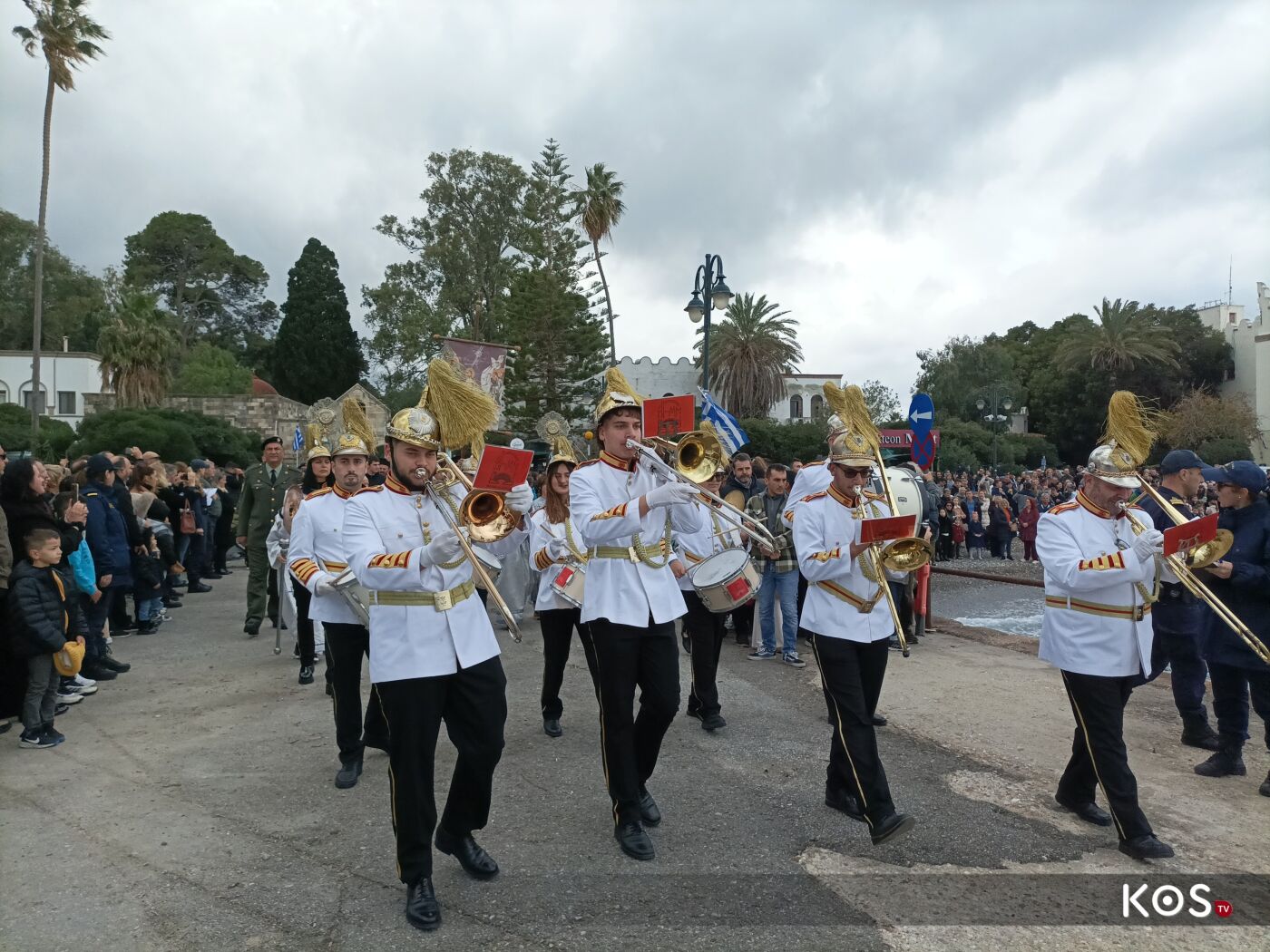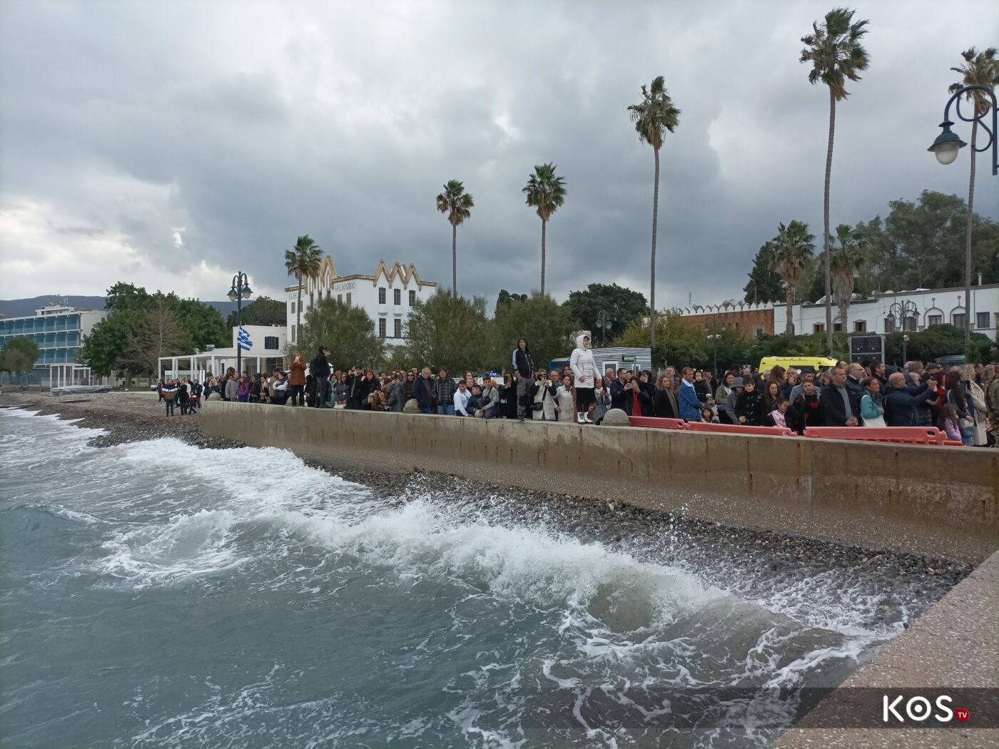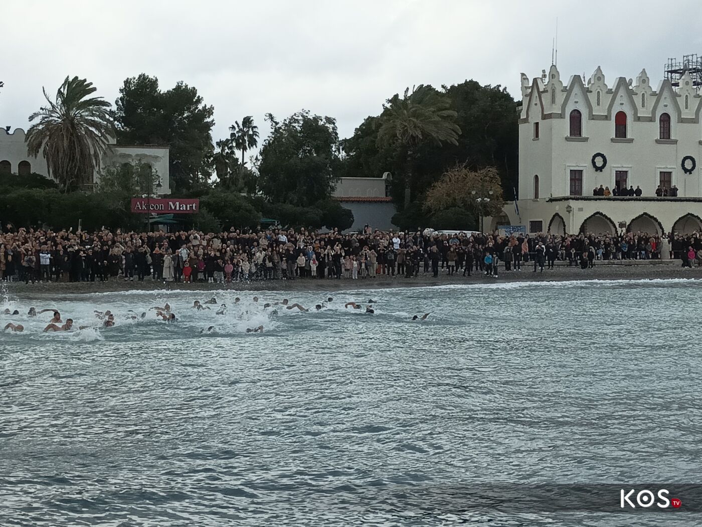 Με το πέρας της Θείας Λειτουργίας από τον Ιερό Ναό του Αγίου Νικολάου ξεκίνησε η πομπή με τις δέουσες τιμές, και με την συνοδεία της Φιλαρμονικής του Δήμου Κω η οποία προπορευόταν και άγημα του στρατού, ως τον πολεμικό προβλήτα, όπου και έγινε η κατάδυση του Τιμίου Σταυρού και ο Αγιασμός των Υδάτων.