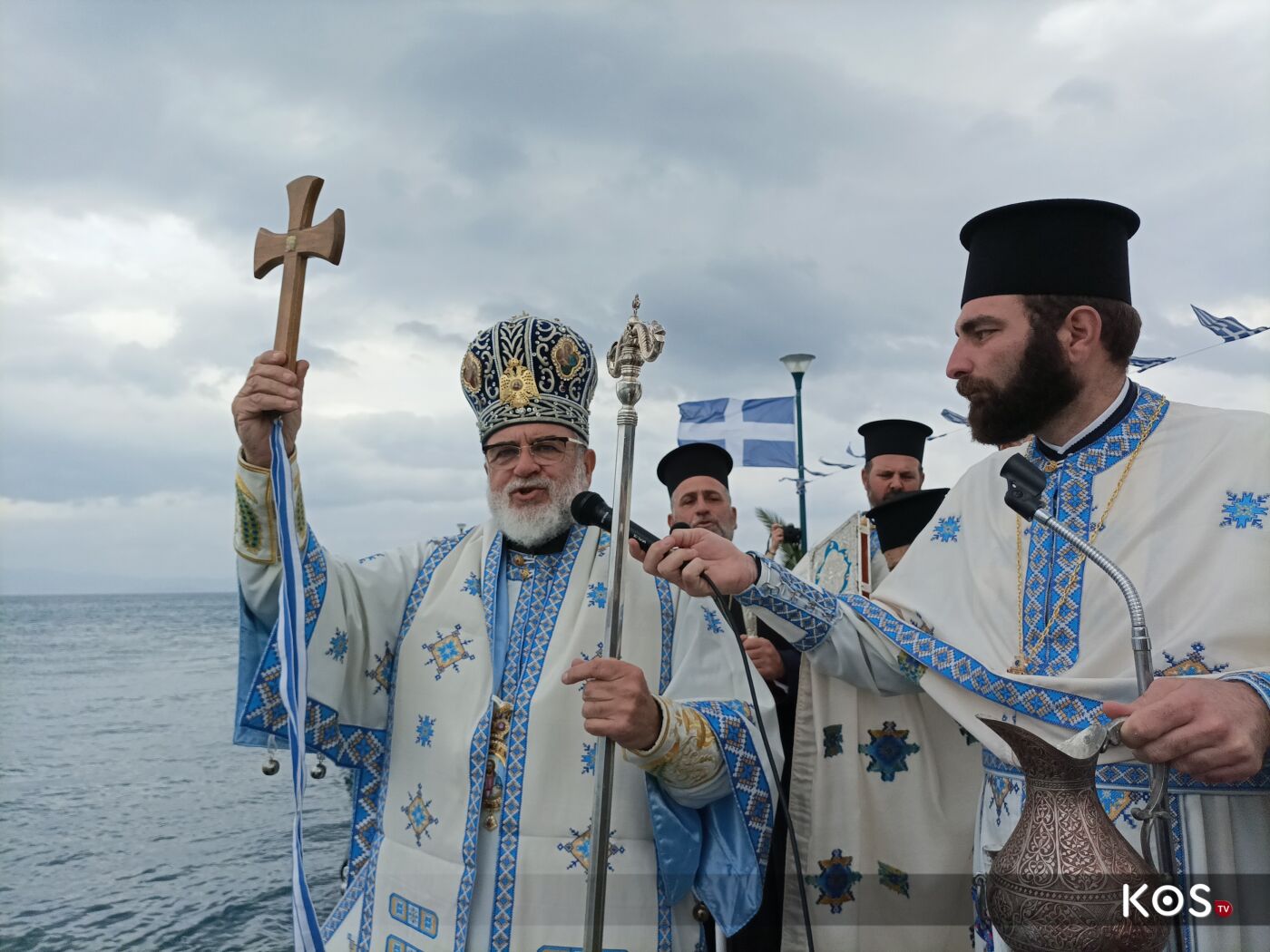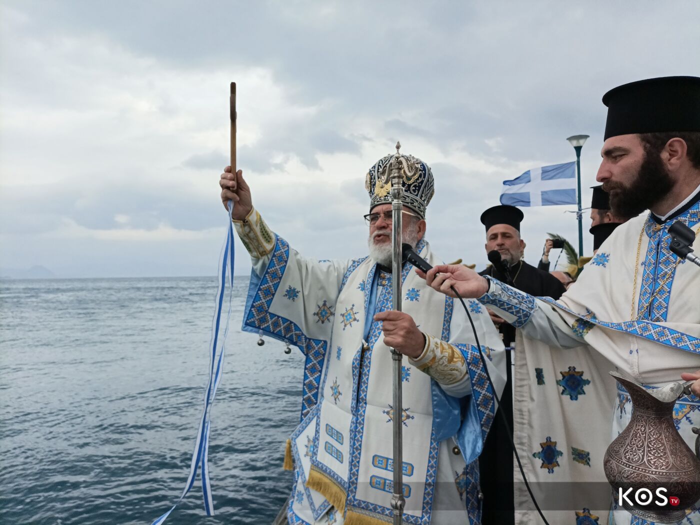 Με κάθε επισημότητα εψάλη ο Όρθρος και τελέστηκε η Αρχιερατική Θεία λειτουργία και η Τελετή του Μεγάλου Αγιασμού στον Μητροπολιτικό Ιερό Ναό Αγίου Νικολάου Κω Κω προεξάρχοντος του Σεβασμιωτάτου Μητροπολίτου Κώου και Νισύρου κ. Ναθαναήλ με συλλειτουργό τον Ιερατ. Προϊστάμενο του Μητροπολιτικού ναού π. Κωνσταντίνο Καματερό, παρουσία εκπροσώπων της πολιτικής ηγεσίας (ανέγνωσαν και τις προφητείες),της τοπικής αυτοδιοίκησης και πλήθους κόσμου.