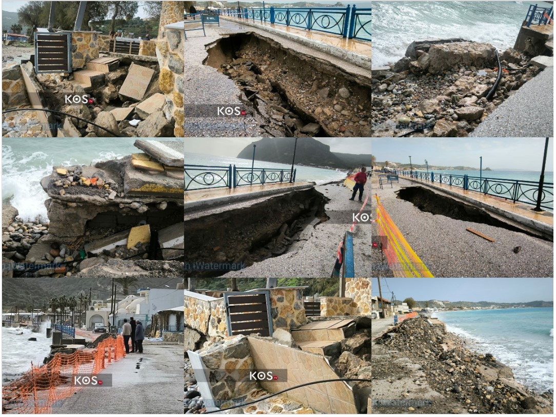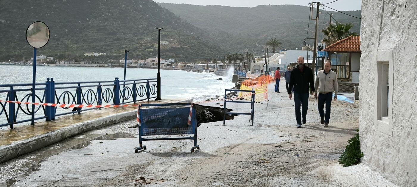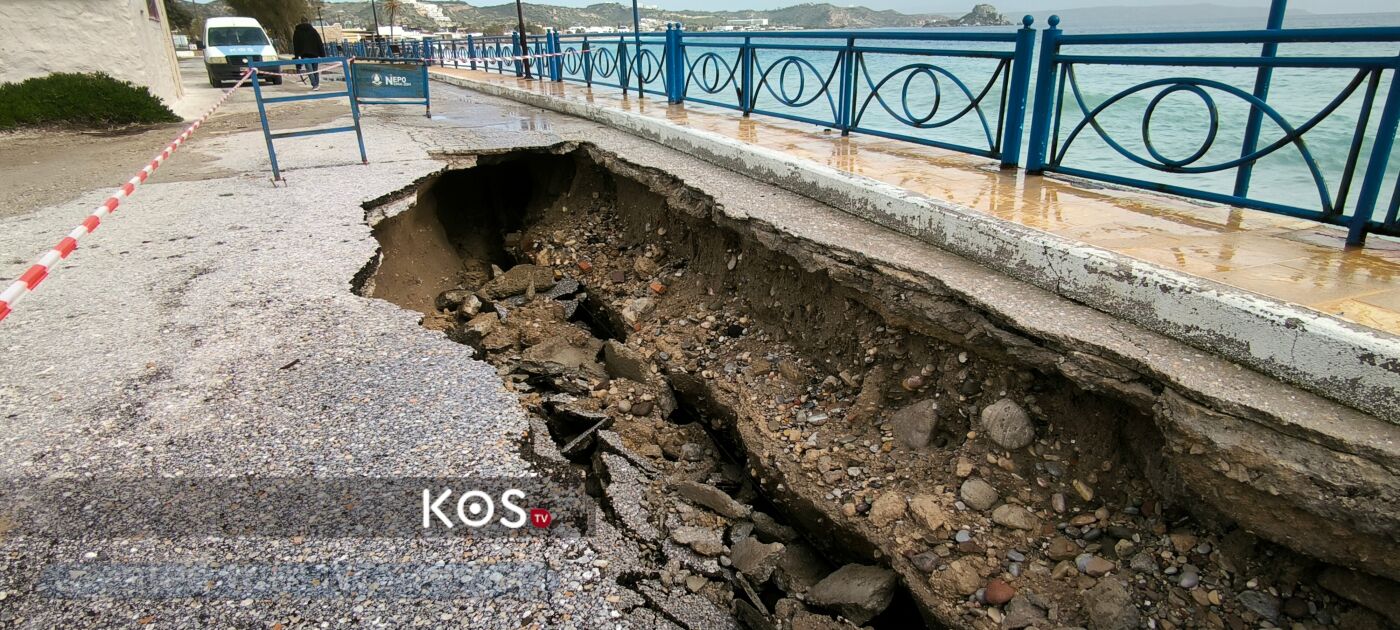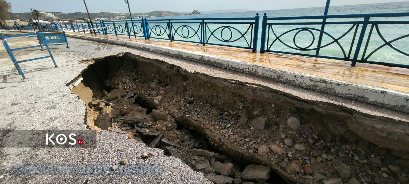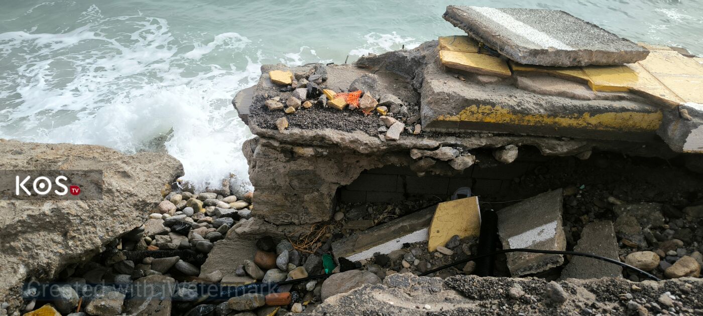 Η ορμή των κυμάτων δημιούργησε τεράστιες τρύπες στο οδόστρωμα, οι οποίες αυξάνονται επικίνδυνα ώρα με την ώρα, καθιστώντας την πρόσβαση στο λιμάνι επικίνδυνη. Η υποχώρηση του εδάφους κάτω από τον δρόμο επιτείνει την ανησυχία για τη στατικότητα των υποδομών σε ολόκληρο το παραλιακό μέτωπο.