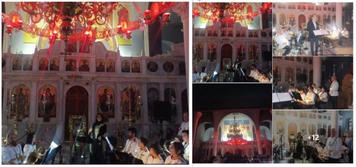 Νεκταρία Καραντζή: Η κορυφαία υμνωδός ερμήνευσε μοναδικά τους βυζαντινούς ύμνους της περιόδου, ενώνοντας τη φωνή της με τους ήχους των πνευστών της Φιλαρμονικής.