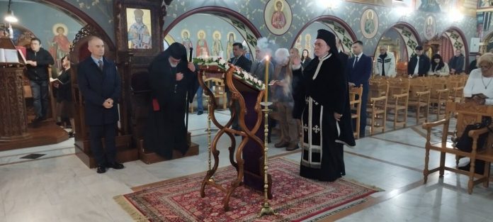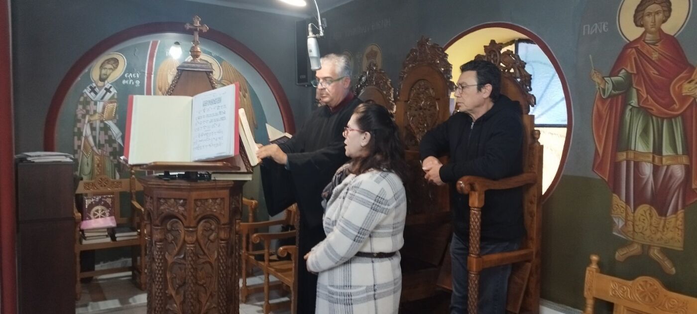 Έψαλλε χορός Ιεροψαλτών υπό τον Πρωτοψάλτη Μιχάλη Ανδρέου, Άλκης Ποταμιάνος, Γιάννης Βαμβακάς, Κατερίνα Εψιμάρη.