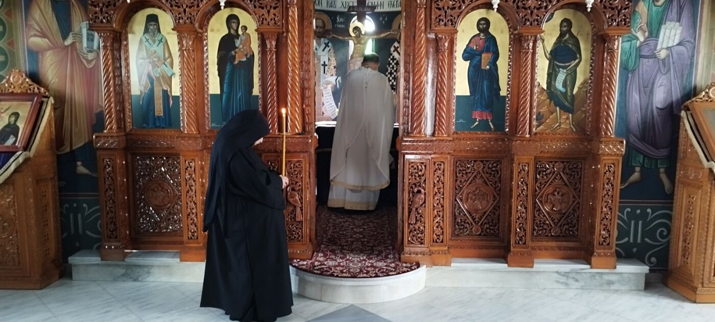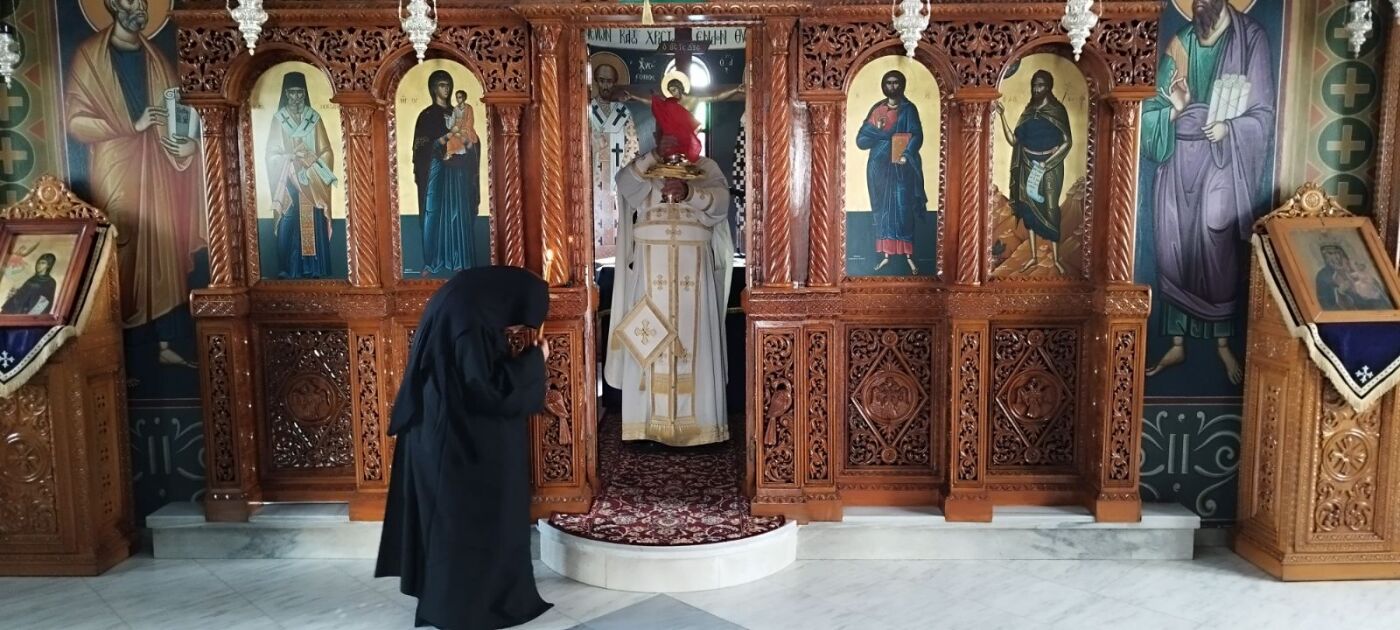 Την Θεία ευχαριστία τέλεσε ο Αρχιμανδρίτης π. Νικήτας Παπανικολάου, ενώ τους ύμνους απέδωσαν η γερόντισσα Ευπραξία και μοναχές της Ιεράς Μονής.
