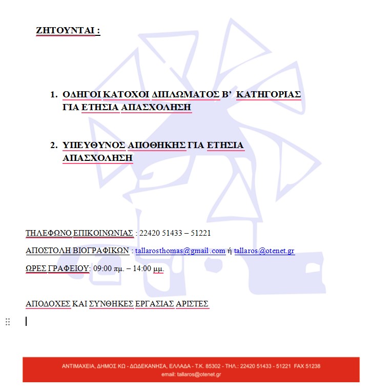 Μικρές Αγγελίες Εμπορικές Επιχειρήσεις «Τάλλαρος»: Ζητούνται Οδηγοί και Υπεύθυνος Αποθήκης για ετήσια απασχόληση Από aegeanews - 16 Νοέ 2025 0 20 Κοινοποίηση στο Facebook Μοιραστείτε στο X