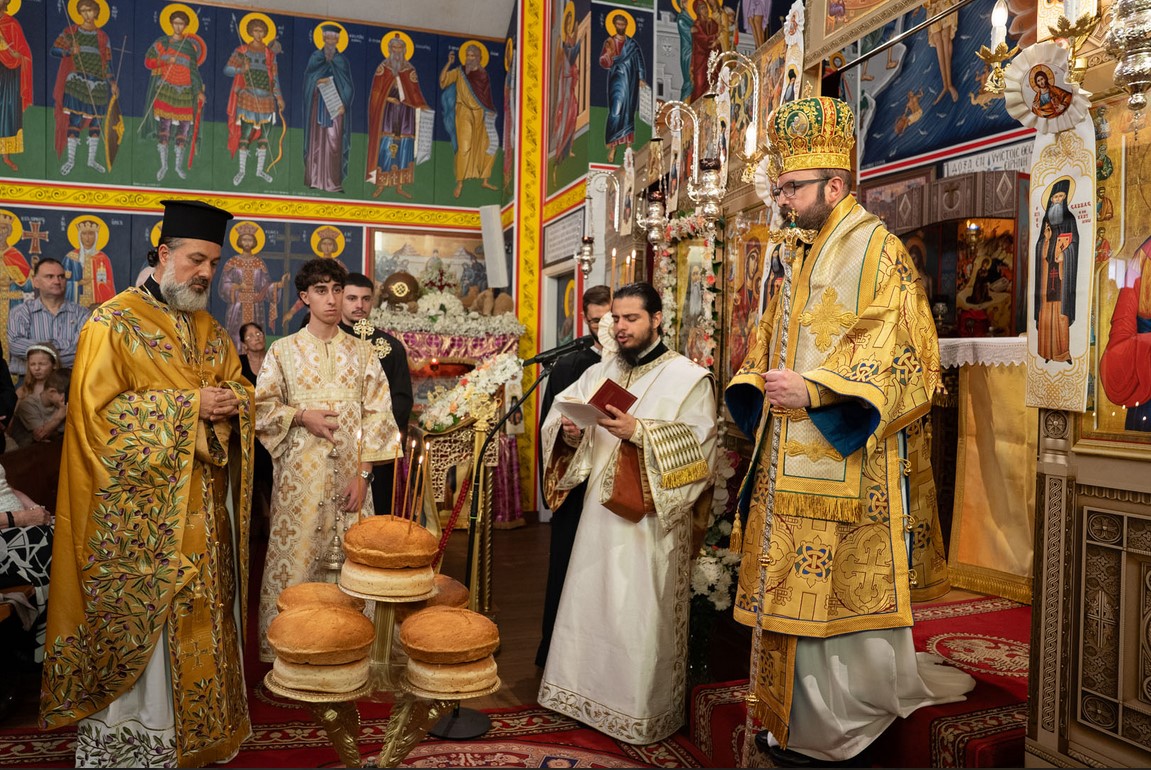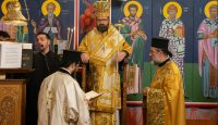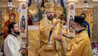 Ο Θεοφιλέστατος κ. Χριστοφόρος χοροστάτησε στην Ακολουθία του Όρθρου και προεξήρχε της Πανηγυρικής Θείας Λειτουργίας, βοηθούμενος από τον Ιερατικώς Προϊστάμενο της Ενορίας π. Σάββα Πιζάνια.