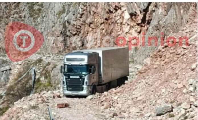 Σύμφωνα με πληροφορίες, η νταλίκα στρίβοντας αριστερά πέρασε μπροστά από τον εκχιονιστικό σταθμό και κινήθηκε στην παλιά, εγκαταλελειμμένη διαδρομή, η οποία έχει κλείσει λόγω κατολισθήσεων.