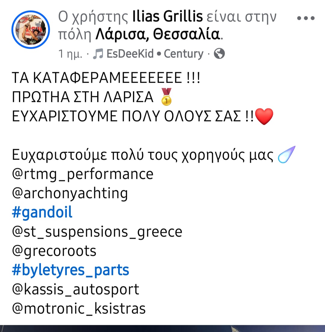 ΕιδήσειςAuto-moto Την 1η θέση κατέλαβε ο δικός μας Ηλίας Γρύλλης στον φιλικό αγώνα Drift στην Λάρισα Από aegeanews - 25 Νοέ 2025 0 19 Κοινοποίηση στο Facebook Μοιραστείτε στο X Την 1η θέση κατέλαβε ο δικός μας Ηλίας Γρύλλης στον φιλικό αγώνα Drift που έγινε στη στεγασμένη αγορά Νεάπολης στην Λάρισα στις 22 και 23 Νοεμβρίου.