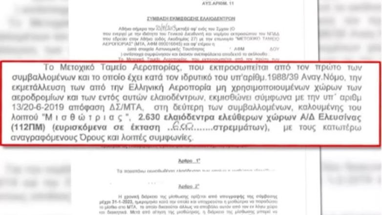 To συμφωνητικό μίσθωσης χώρου με ελιές μέσα στην 112 Πτέρυγα Μάχης