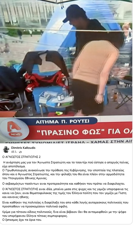 Ντροπή του! Η εμπλοκή του Στρατού πάνω από την πλατεία Συντάγματος και κάτω από την Βουλή των Ελλήνων είναι απαράδεκτη. Το μνημείο του Αγνώστου Στρατιώτη ανήκει στον λαό, στους ανώνυμους αγωνιστές των πολέμων, αλλά των αγωνιστών για δημοκρατία, ισονομία και δικαιοσύνη. Η προαναγγελθείσα νομοθέτηση συνιστά ευθεία βολή στη δημοκρατία από μια κυβέρνηση που έχει χάσει κάθε λαϊκό έρεισμα, κάθε νομιμοποίηση. Να πόσο χαμηλά μπορεί να φτάσει ένας πρωθυπουργός που απεγνωσμένα προσπαθεί να κάνει damage control. Να πόσο φοβάται την κοινωνία και την ειρηνική διαμαρτυρία ο κ. Μητσοτάκης. Να πόσο επικίνδυνή είναι αυτή η καθεστωτική δεξιά. Να γιατί πρέπει να φύγει το συντομότερο δυνατό».
