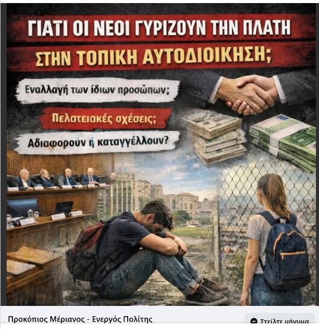 Η τοπική αυτοδιοίκηση δεν είναι διακοσμητικός θεσμός. Είναι ο χώρος όπου κρίνονται πολιτικές για την ποιότητα ζωής. Αν οι νέοι λείπουν, το μέλλον σχεδιάζεται χωρίς αυτούς. Και τότε το ερώτημα γίνεται ακόμη πιο αιχμηρό:
