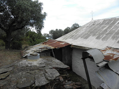 Αριστερά ήταν ο τάφος του παπα-Τύχωνα, οπού ο Γέροντας είχε φυτεύσει δενδρολίβανα για να μην πατιέται. Τρία-τέσσερα σκαλοπάτια οδηγούσαν σ’ ένα διάδρομο, πού υπήρχε πριν από την είσοδο, ανάμεσα στο σπίτι και σ’ ένα πεζούλι. Οι άκρες του διαδρόμου ήταν κλειστές με πόρτες, για να κόβεται το ρεύμα του αέρος.