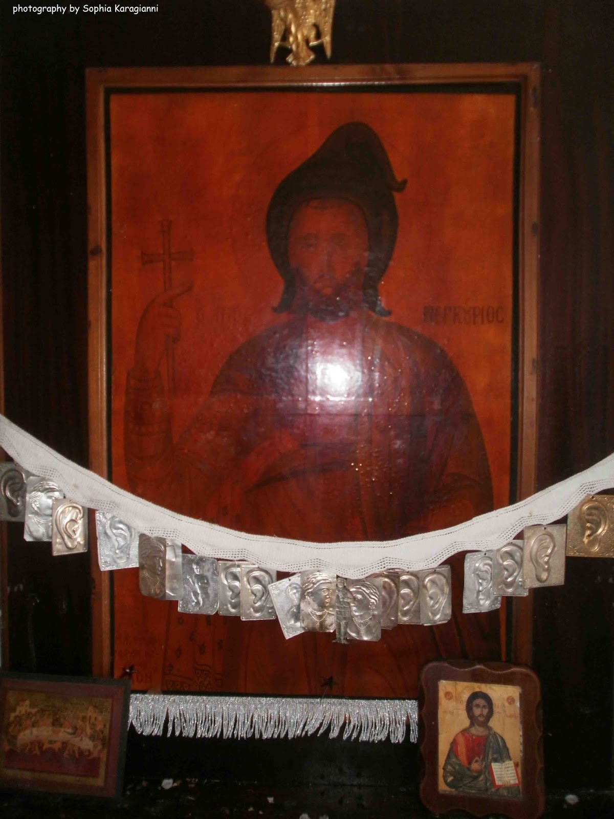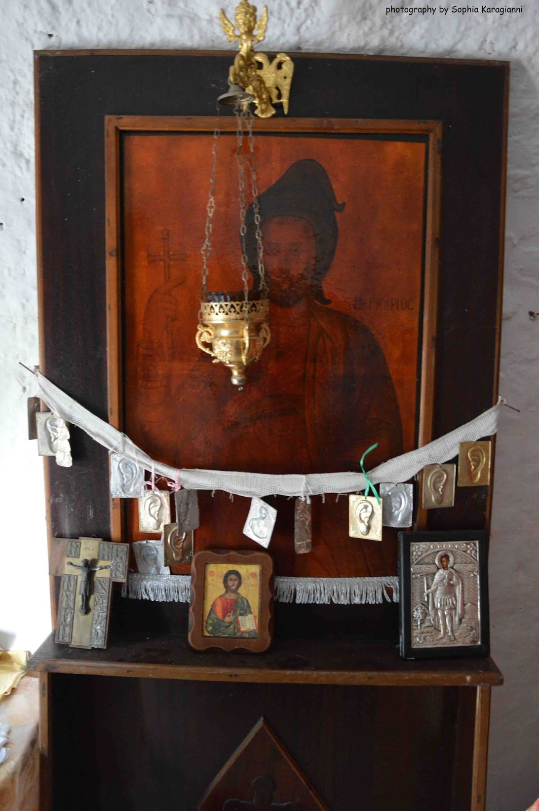 Σε κάποιες περιοχές, συμπεριλαμβανομένου και του Ασφενδιού (αν κρίνω από τα αναθήματα-τάματα- στην εικόνα) ο Άγιος τιμάται ως ιατρός των παθήσεων των αυτιών.