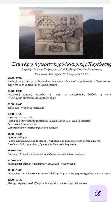 Θέμα του σεμιναρίου με εισηγητή τον π. Νικήτα ήταν η Αγιορείτικη γαστρονομική παράδοση.