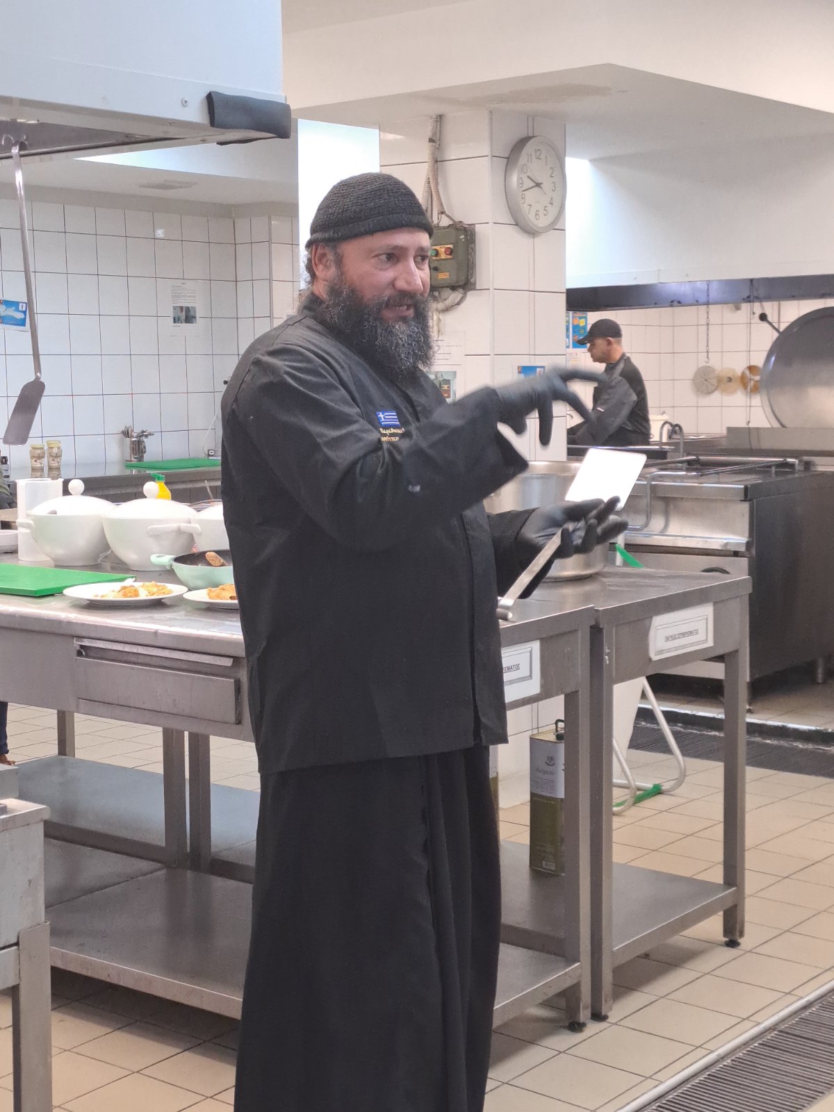Προσκεκλημένος για πρώτη φορά στην διακλαδική Στρατιωτική Σχολή Αξιωματικών Σωμάτων (ΣΣΑΣ), ήταν ο Αρχιμάγειρας του Αγίου Όρους π. Νικήτας από το κελλί της Παναγίας Πορταΐτισσας.