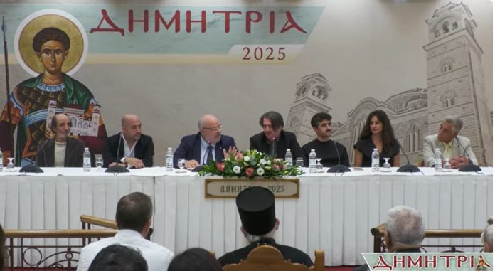 Τη Δευτέρα 13 Οκτωβρίου, 16η ημέρα των εορταστικών εκδηλώσεων «ΔΗΜΗΤΡΙΑ 2025» του Ιερού Ναού Αγίου Δημητρίου, Δήμου Αγίου Δημητρίου Αττικής, στις 7:00 το απόγευμα, αμέσως μετά την τέλεση των ιερών ακολουθιών — Εσπερινού και ιερών παρακλήσεων προς τον Άγιο Γρηγόριο τον Θεολόγο και τον Άγιο Δημήτριο τον Μυροβλύτη — πραγματοποιήθηκε μια ξεχωριστή εκδήλωση στο ισόγειο χώρο του Ιερού Ναού, με τη συμμετοχή εκατοντάδων πιστών που κατέκλυσαν τον χώρο, για να ακούσουν και να αφουγκραστούν τα όσα έζησαν οι συντελεστές και οι ηθοποιοί της σειράς με τίτλο: «Ο Άγιος Παΐσιος: Από τα Φάρασα στον Ουρανό». Η εκδήλωση ξεκίνησε με ευχαριστίες που εξέφρασε ο προϊστάμενος του ιερού ναού, π. Ματθαίος Χάλαρης, εκ μέρους του πολυπληθούς ακροατηρίου που έδωσε το παρόν αλλά και των εκατοντάδων που παρακολουθούσαν διαδικτυακά, αρχικά στον Καθηγούμενο της Ιεράς Μεγίστης Μονής Βατοπαιδίου, Πανοσιολογιώτατο Αρχιμανδρίτη Γέροντα Εφραίμ, ο οποίος ήταν η ψυχή και η έμπνευση της σειράς, και έπειτα όλους τους συντελεστές και ηθοποιούς αλλά ιδιαίτερα αυτούς που παρευρέθηκαν: κ. Γεώργιο Τσιάκκα – Σεναριογράφο κ. Στάμο Τσάμη – Σκηνοθέτη κ. Προκόπη Ἀγαθοκλέους – Άγιο Παΐσιο κ. Μαρίνα Καλογήρου – Ηγουμένη Φιλοθέη κ. Αντώνη Κατσαρή – Παπα-Τύχων κ. Πέτρο Ξεκούκη – Μοναχό Γαλακτίων Καθώς και τον κ. Νικόλαο Γκουράρο, Διευθυντή Ανάπτυξης του Ινστιτούτου «Άγιος Μάξιμος ο Γραικός», ο οποίος διηύθυνε τη συζήτηση. Η συζήτηση που ακολούθησε, μέσω των εμπνευσμένων ερωτήσεων που έκανε ο κ. Γκουράρος, αλλά κυρίως μέσω των ειλικρινών απαντήσεων που έδωσαν οι συντελεστές της σειράς ένας προς έναν και των έντονων και ένθερμων αντιδράσεων του πολυπληθούς ακροατηρίου που γέμισε όλους τους χώρους του ισογείου Ναού και όχι μόνο, φανερώθηκε η ευλογία του Θεού, η συνεχής ζωντανή παρουσία του Αγίου Παϊσίου, αλλά και η πίστη όλων των συντελεστών, που δημιούργησαν αυτό το συγκλονιστικό αποτέλεσμα. Τα εκτεταμένα χειροκροτήματα του κοινού και οι θετικές αυθόρμητες αντιδράσεις, που συνεχώς διέκοπταν τα λεγόμενα των συντελεστών, αποδεικνύουν το γιγαντιαίο πνευματικό μέγεθος αυτού του επιτυχημένου εγχειρήματος. Η τιμητική εκδήλωση έφτασε στο αποκορύφωμά της με την απονομή του Βραβείου «ΔΗΜΗΤΡΙΑ 2025» στο σκηνοθέτη κ. Στάμο Τσάμη και την συμβολική προσφορά αναμνηστικών δώρων στους συντελεστές της σειράς, από τον Καθηγούμενο της Ιεράς Μεγίστης Μονής Βατοπαιδίου, Πανοσιολογιώτατο Αρχιμανδρίτη Γέροντα Εφραίμ, ο οποίος έκανε και τον επίλογο αυτής της εκδήλωσης, ευχαριστώντας πρώτα το Θεό για το προσωπικό όνειρο που του εκπλήρωσε, και έπειτα όλους τους συντελεστές που σήμερα παρευρέθηκαν αλλά και όλους όσους φανερά ή εν τω κρυπτώ εργάστηκαν για την υλοποίηση αυτής της καθόλα επιτυχημένης σειράς, που σκοπό έχει να μεταδίδει το Φως, που δεν είναι άλλο από τον Έναν και αληθινό Θεό.