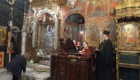 Οι καμπάνες της Ιεράς Μονής Αρχαγγέλου Μιχαήλ του Πανορμίτη χτυπούσαν εκκωφαντικά κάνοντας την ατμόσφαιρα ακόμη πιο ιδιαίτερη.