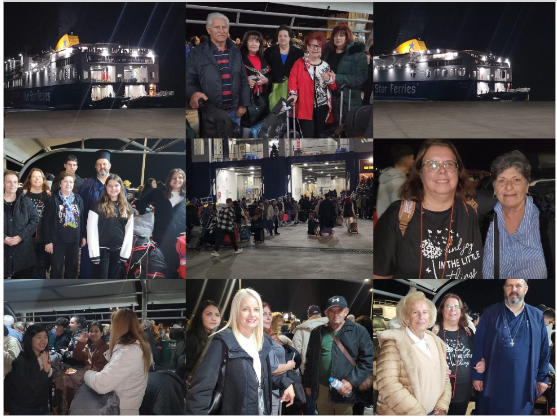 Πάνω από 100 εκδρομείς αναχώρησαν απόψε ακτοπλοϊκώς για τις προσκυνηματικές εκδρομές σε δυτική Ελλάδα και κεντρική Μακεδονία.