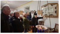 Η συνάντηση πραγματοποιήθηκε σε ιδιαίτερα θερμό κλίμα, με τον Ηγούμενο να δέχεται την αποστολή στο Γραφείο του, όπου και τους ξενάγησε σε μέρος της πλούσιας συλλογής των περίφημων ξυλόγλυπτων της Μονής. Τα ξυλόγλυπτα —ανεκτίμητα καλλιτεχνήματα που εντάσσονται στη γενικότερη συλλογή έργων τέχνης και κειμηλίων της Μονής— δεν βρίσκονται συγκεντρωμένα σε έναν χώρο, αλλά κοσμούν ποικίλα σημεία εσωτερικα΄του μοναστηριού, συμπεριλαμβανομένου και του Γραφείου του Ηγουμένου.