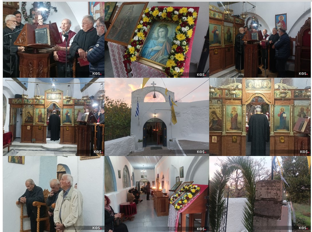 Με λαμπρότητα και μεγαλοπρέπεια εψάλη απόψε ο πανηγυρικός εσπερινός της εορτής της Μεγαλομάρτυρος και πανσόφου Αγίας Αικατερίνης με πολλούς προσκυνητές, στο φερώνυμο Ιερό Παρεκκλήσιο της Αγίας στην πόλη της Κω.