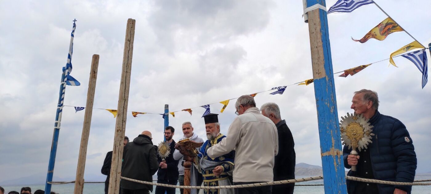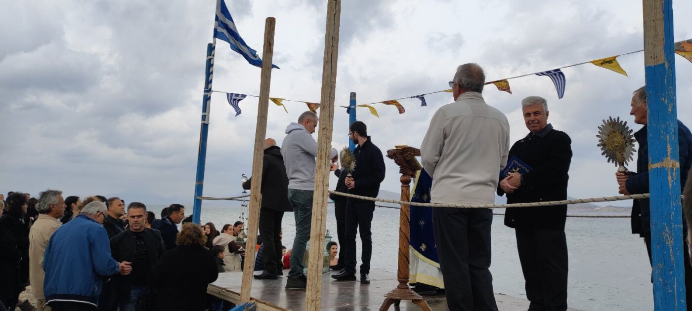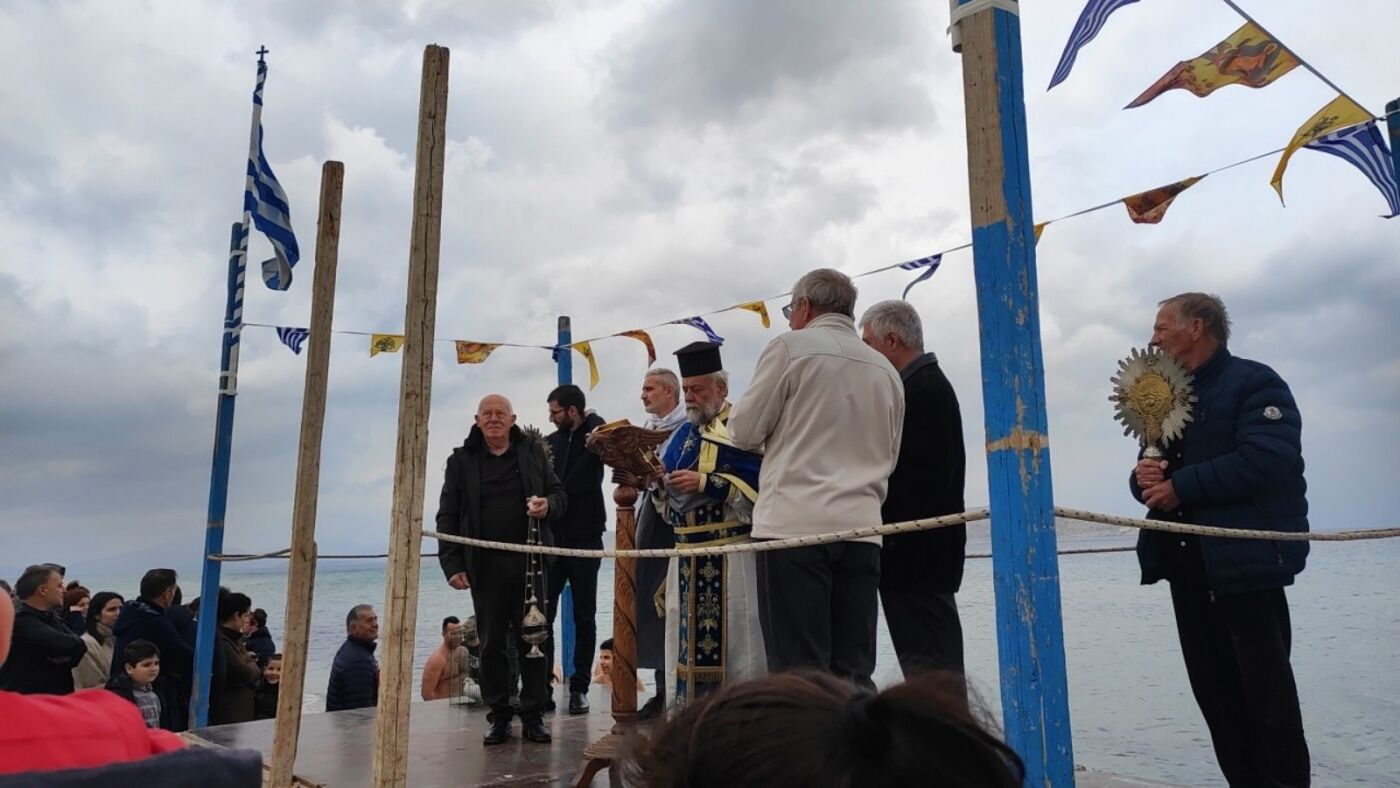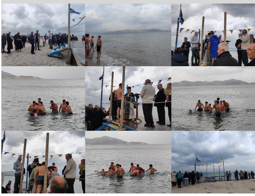 Το πρωί τελέστηκε ο Όρθρος, η Θεία Λειτουργία στον Ιερό Ναό Αναλήψεως και η ακολουθία του Μεγάλου Αγιασμού. Στη συνέχεια, η πομπή κατευθύνθηκε στην παραλία στο Τιγκάκι, όπου πραγματοποιήθηκε ο καθαγιασμός των υδάτων με την κατάδυση του Τιμίου Σταυρού.