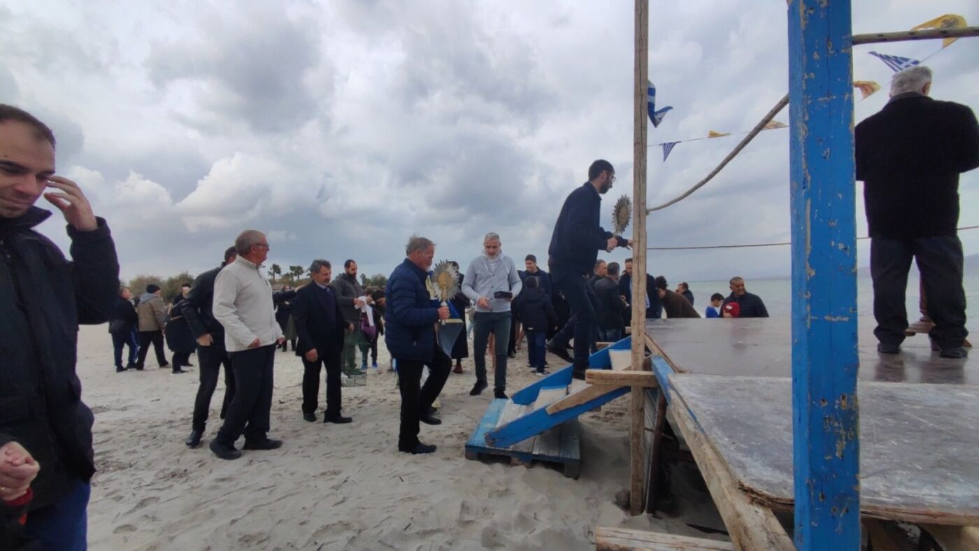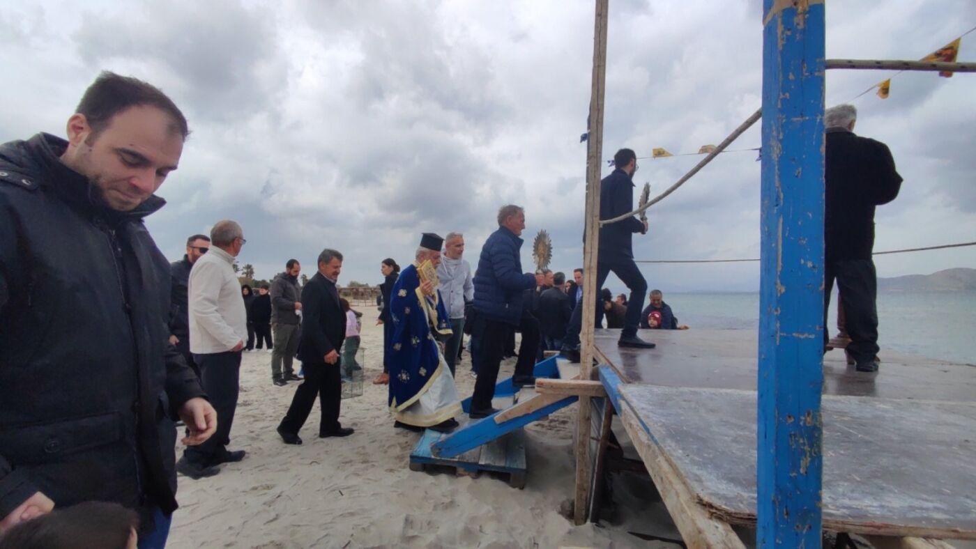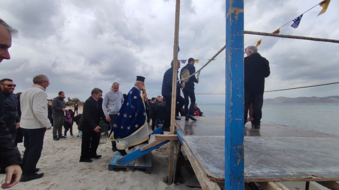 Το πρωί τελέστηκε ο Όρθρος, η Θεία Λειτουργία στον Ιερό Ναό Αναλήψεως και η ακολουθία του Μεγάλου Αγιασμού. Στη συνέχεια, η πομπή κατευθύνθηκε στην παραλία στο Τιγκάκι, όπου πραγματοποιήθηκε ο καθαγιασμός των υδάτων με την κατάδυση του Τιμίου Σταυρού.