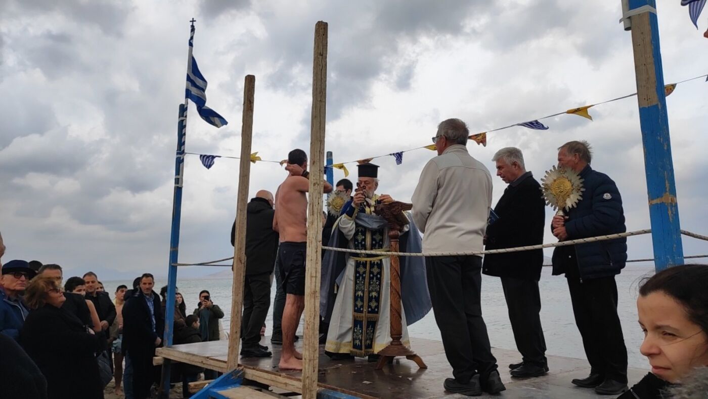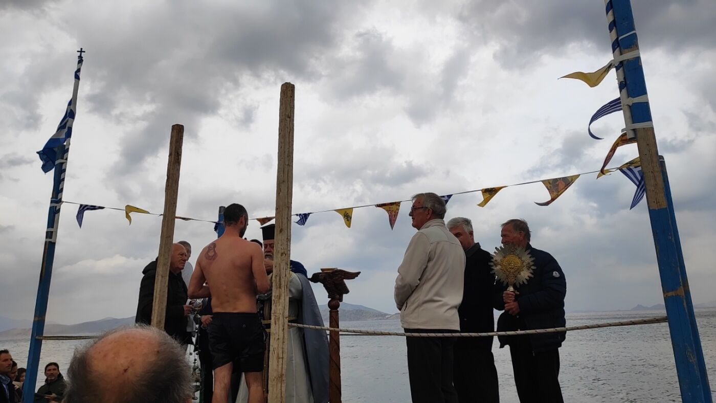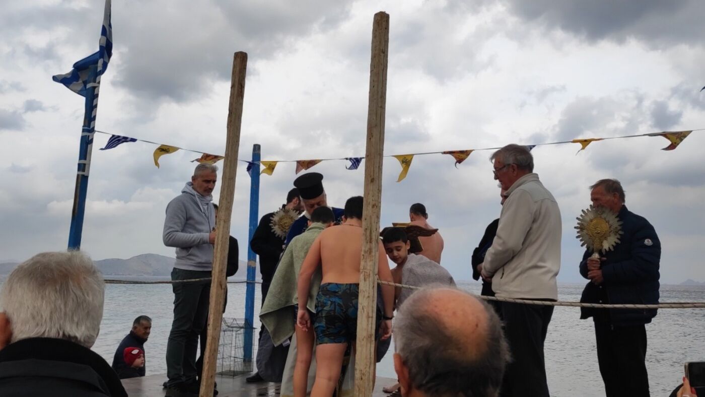 Την ευλογία του Σταυρού έλαβε φέτος ο νεαρός Σπύρος Χατζηνικολάου, που κατάφερε να φτάσει πρώτος στα νερά.