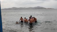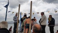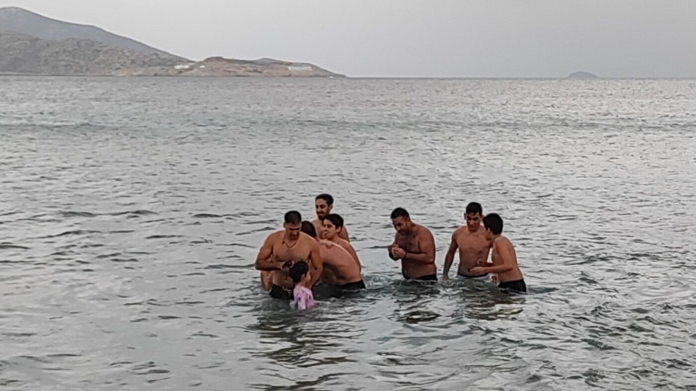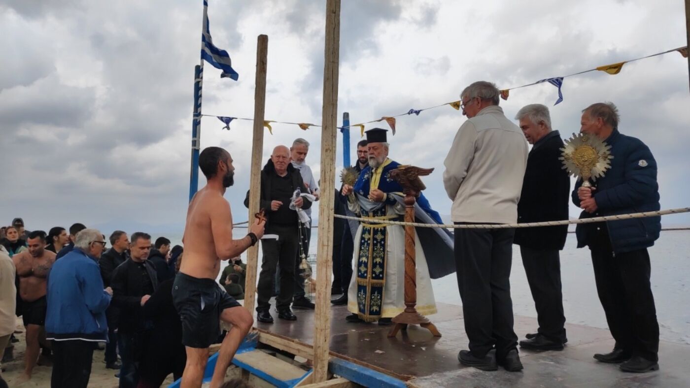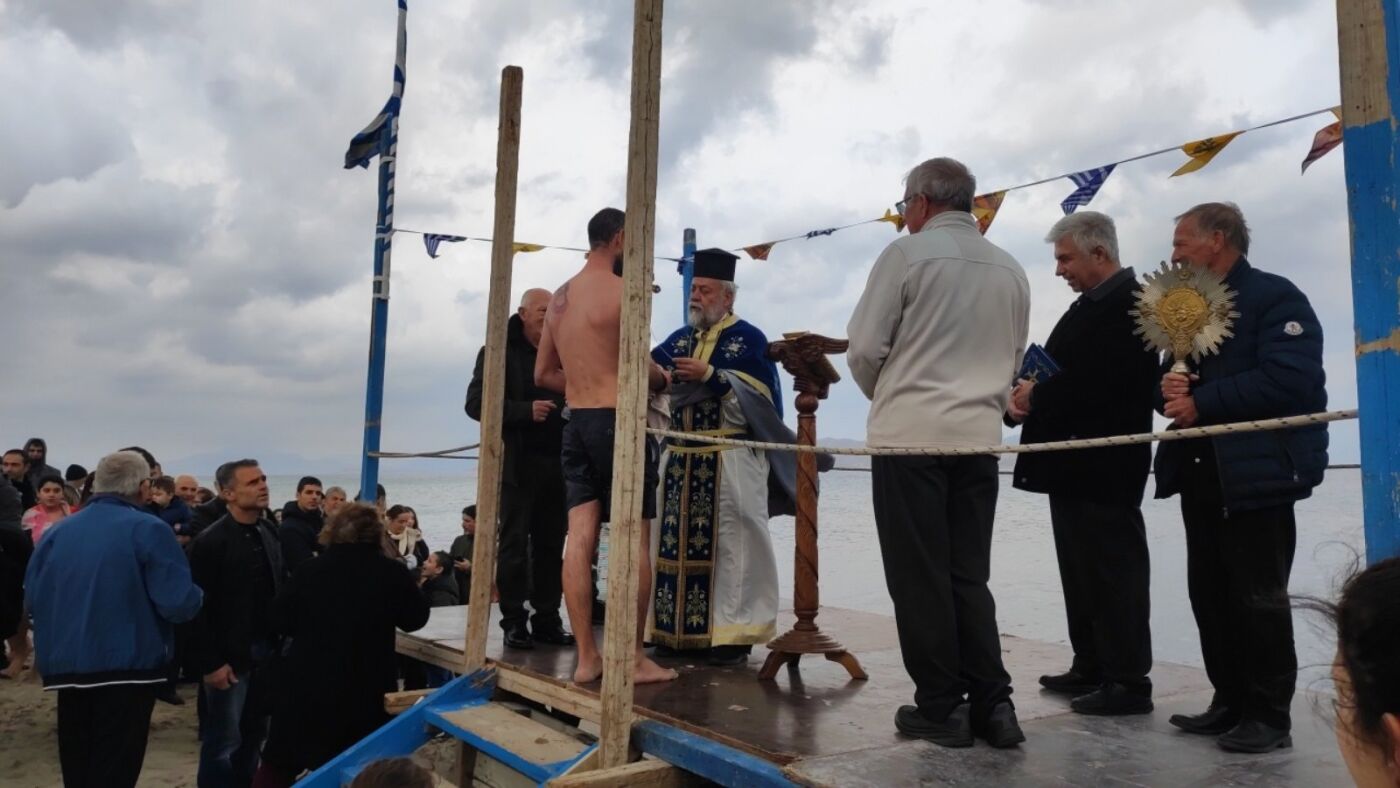 Την ευλογία του Σταυρού έλαβε φέτος ο νεαρός Σπύρος Χατζηνικολάου, που κατάφερε να φτάσει πρώτος στα νερά.