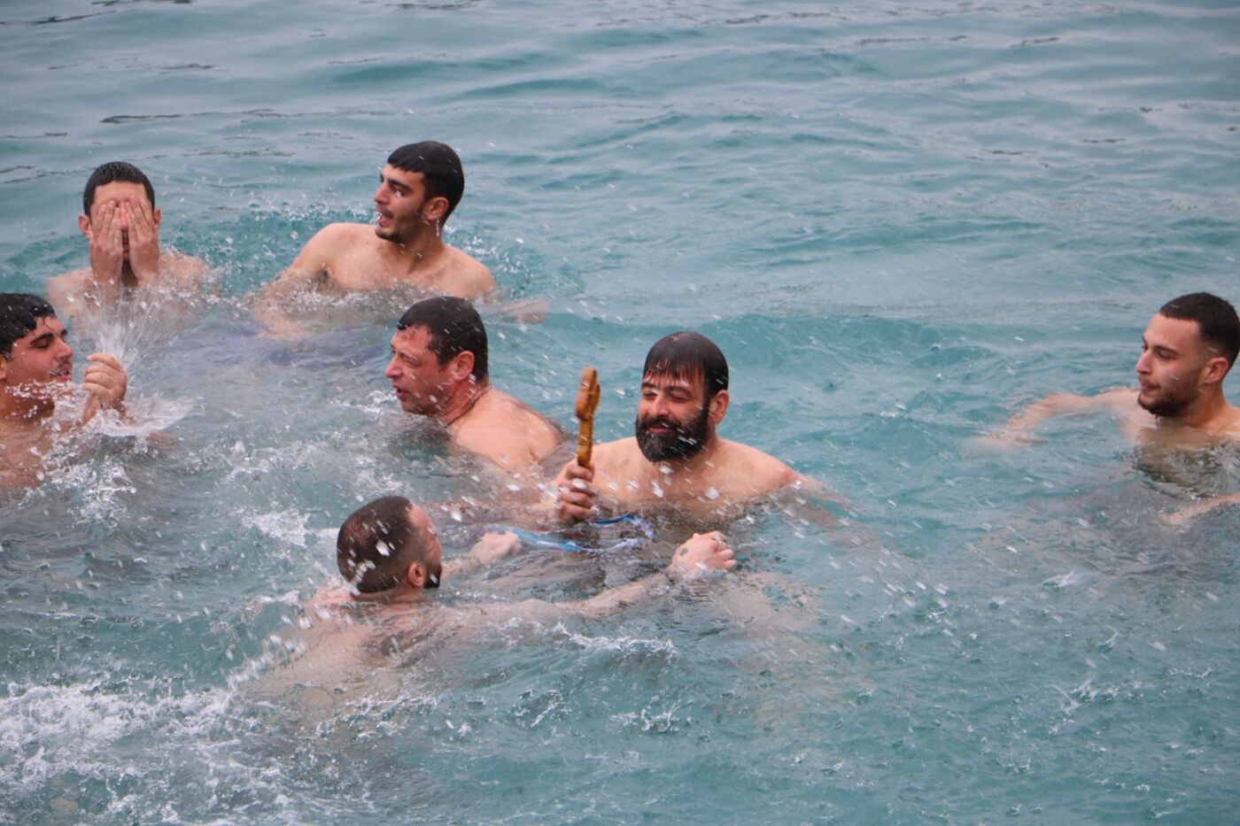 Η τελετή της κατάδυσης του Τιμίου Σταυρού στο Καμάρι πραγματοποιήθηκε από τον π. Στέφανο Κουζούκα και τον π. Ιωάννη Σεβαστάκη, πλαισιωμένους από τις τοπικές αρχές.
