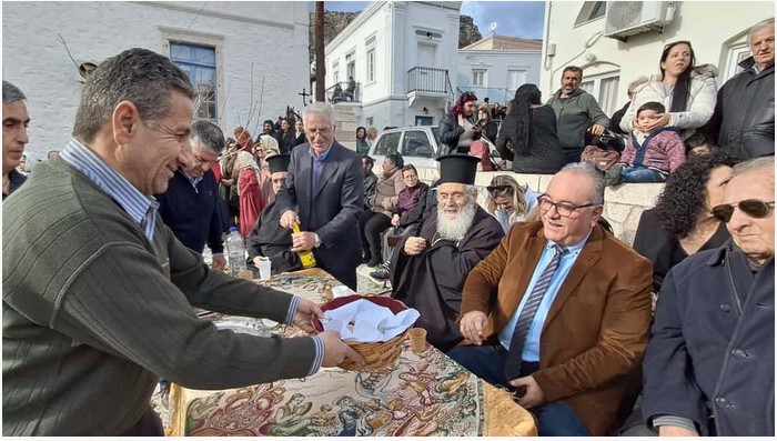 Στις 5:00 ακριβώς, ο Σεβασμιώτατος Μητροπολίτης Λέρου, Καλύμνου και Αστυπαλαίας Παΐσιος χτύπησε την καμπάνα. Ο ήχος της διέκοψε γλυκά τον ρυθμό του χορού και σηματοδότησε τη μετάβαση: το τέλος της αποκριάτικης χαράς και την είσοδο στη Μεγάλη Τεσσαρακοστή.