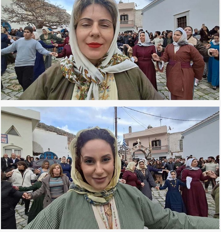 Καλυμνιές όλων των ηλικιών, ντυμένες με τα παραδοσιακά καβάδια, τα χρυσομέταξα στολίδια και τα κεντημένα στήθη με τα φλουριά, έστησαν τον χορό όπως τον θέλει η παράδοση δεκαετιών. Τα πολύχρωμα υφάσματα έλαμπαν κάτω από το φως του απογεύματος, ενώ η εξαιρετική ανοιξιάτικη μέρα ευνόησε τη μαζική προσέλευση.