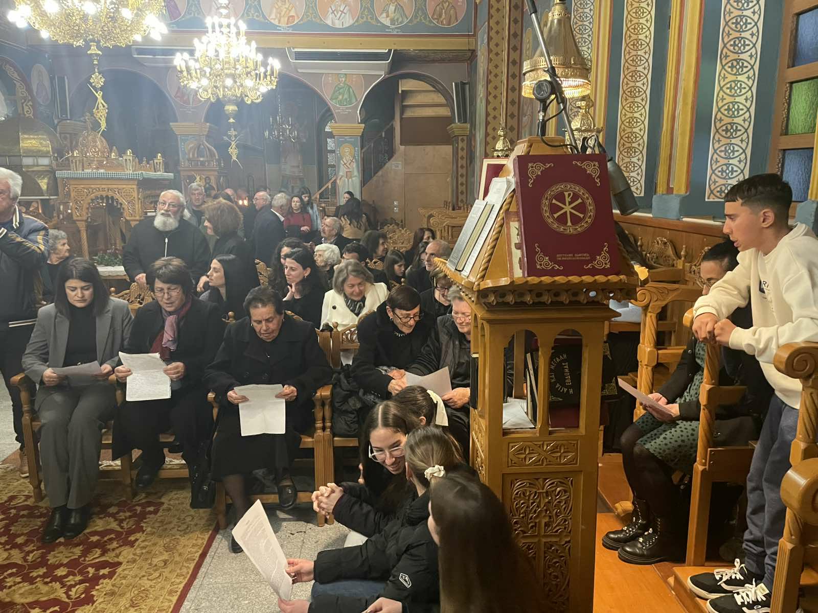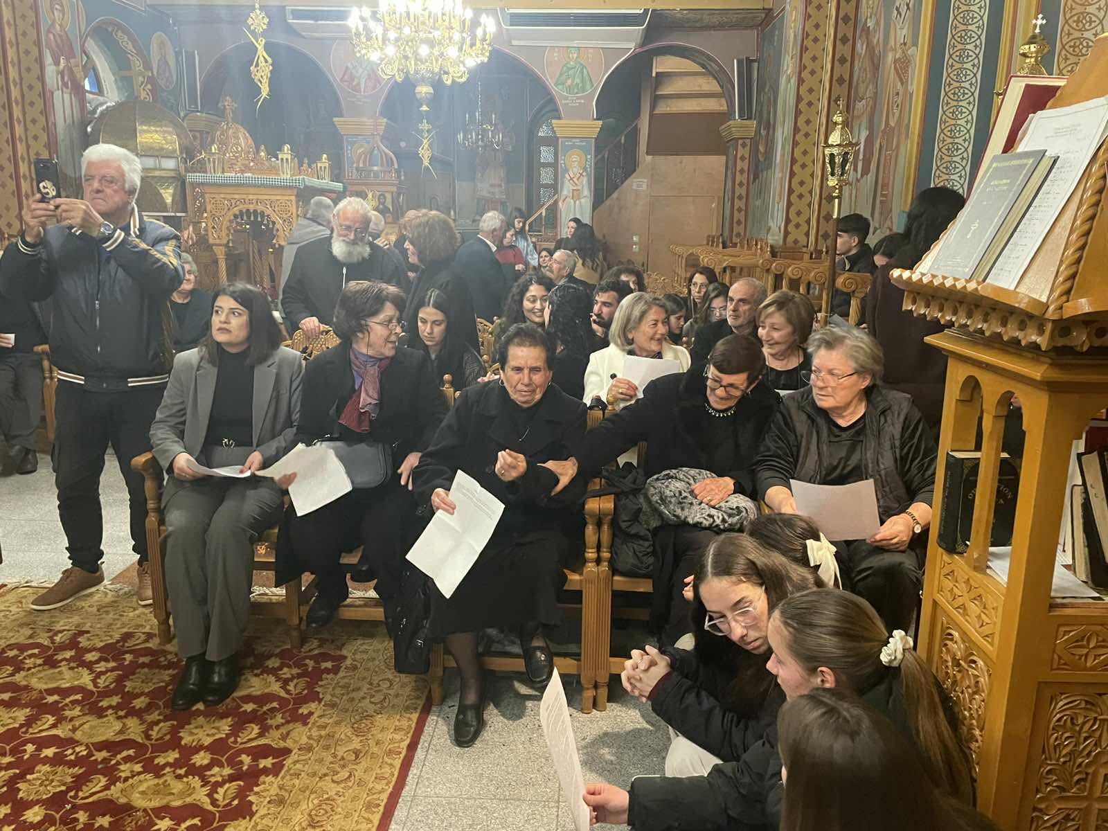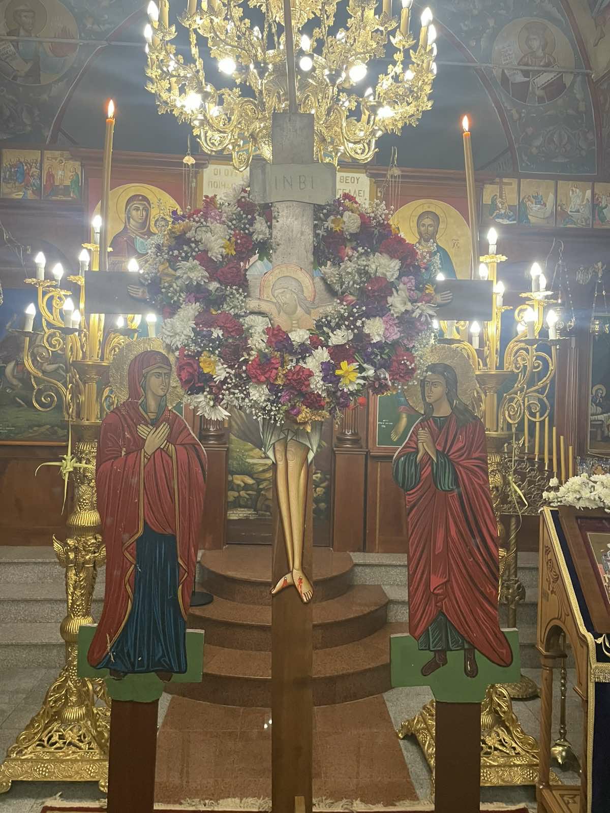 Αμέσως μετά την Ακολουθία των Αχράντων Παθών και του Όρθρου της Μ. Παρασκευής, οι γυναίκες της ενορίας -όπως συνηθίζεται- είπαν μπροστά στον Εσταυρωμένο το μοιρολόι της Παναγίας για να ακολουθήσει ο στολισμός του Επιταφίου.