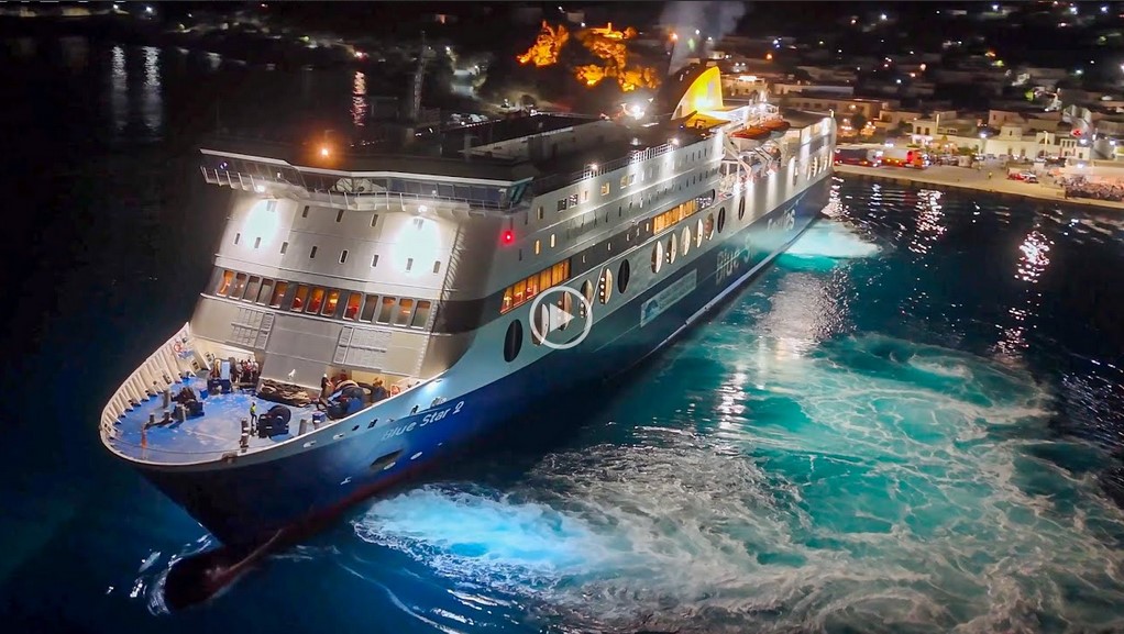 Αριστοτεχνική μανούβρα του Blue Star 2 που δένει στην Πάτμο σε μόλις 3 λεπτά!