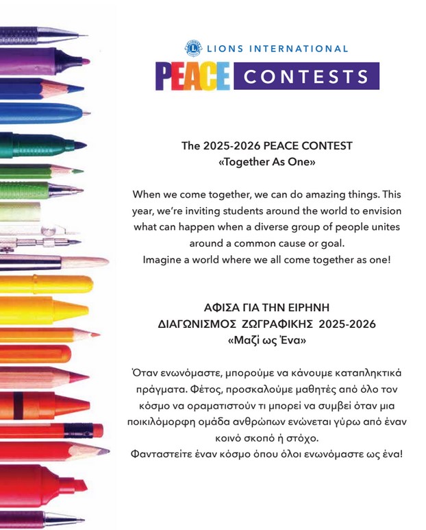 Διαγωνισμός Αφίσα για την ειρήνη 2025-2026 «Together As One» «Μαζί Ως Ένα»