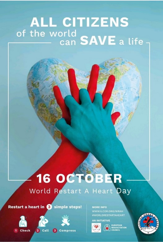Η Παγκόσμια Ημέρα Επανεκκίνησης Καρδιάς γιορτάζεται στις 16 Οκτωβρίου κάθε χρόνο, με στόχο την ενημέρωση και εκπαίδευση των πολιτών στην Καρδιοπνευμονική Αναζωογόνηση (ΚΑΡΠΑ) και τη χρήση Απινιδωτή (ΑΕΑ)