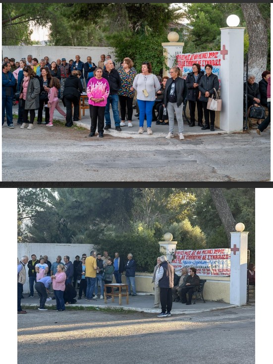 Μαζική συγκέντρωση έξω από την πύλη του Νοσοκομείου Λέρου
