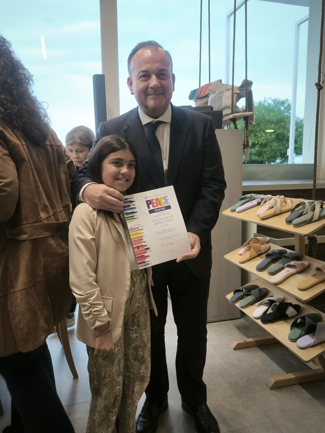 Για τους στόχους και το μήνυμα του διαγωνισμού μίλησαν η Πρόεδρος της επιτροπής «Αφίσα για την Ειρήνη», κα Βίκυ Φλάσκου, καθώς και η Αντιπρόεδρος της επιτροπής, κα Αρετή Φλωροπούλου, οι