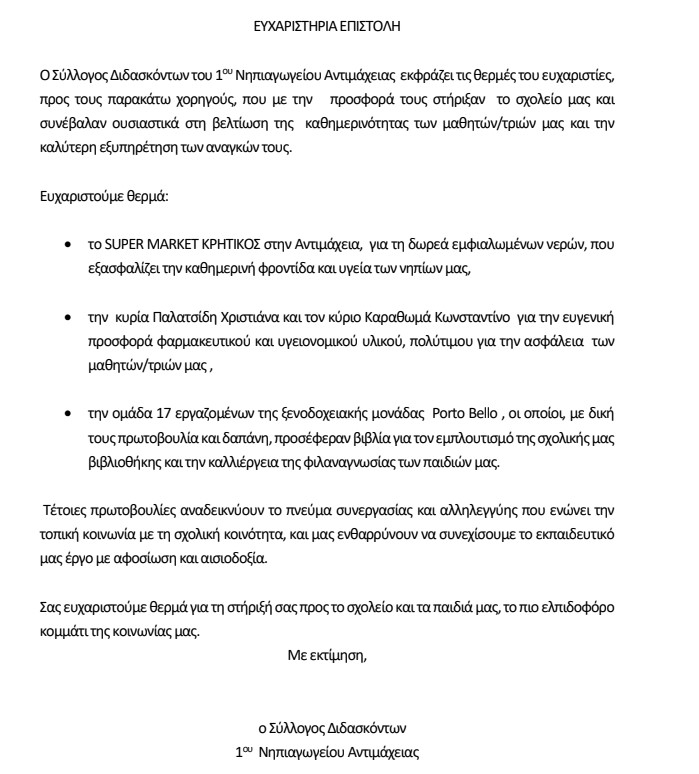 ΕιδήσειςΕν Δωδεκανήσω 1ο Νηπιαγωγείο Αντιμάχειας: Ευχαριστήρια επιστολή Από aegeanews - 22 Οκτ 2025 0 133 Κοινοποίηση στο Facebook Μοιραστείτε στο X